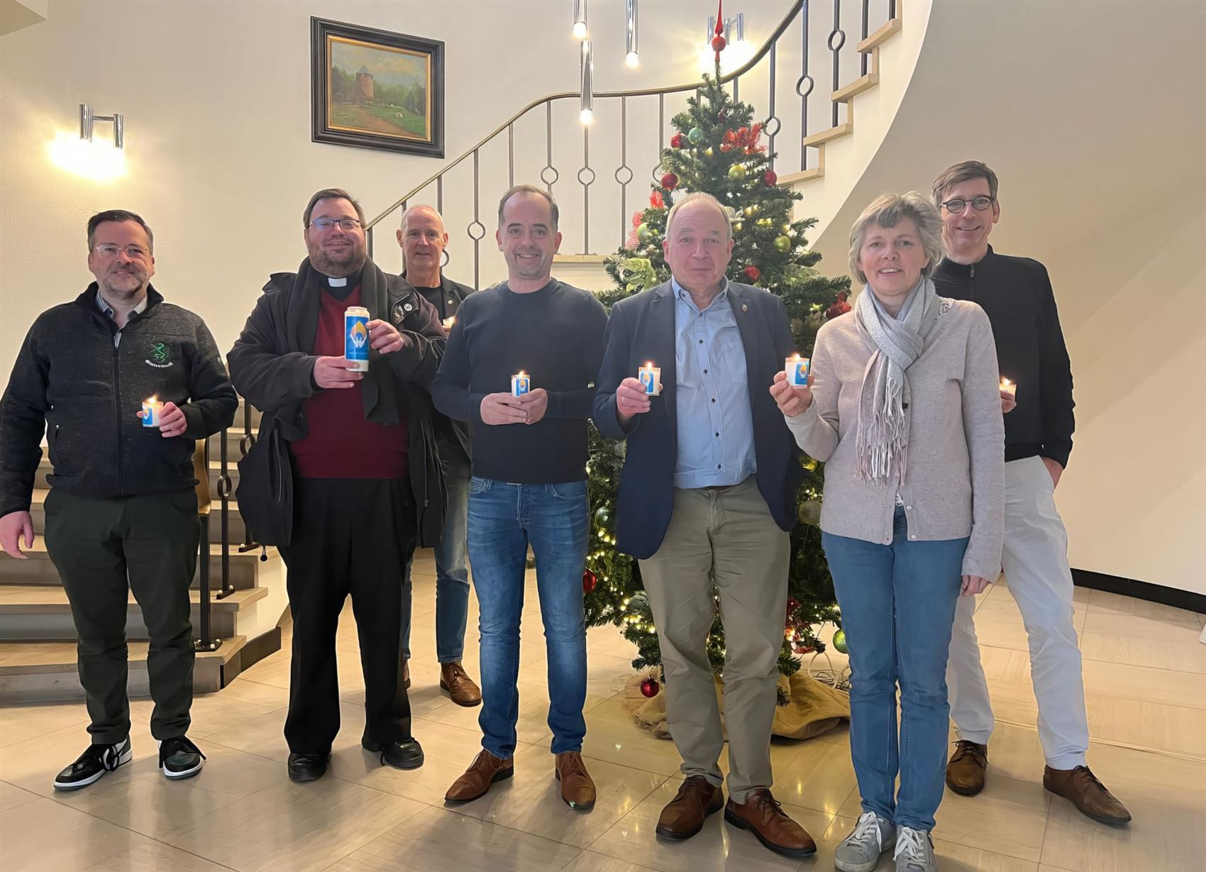 Pastoor Roel bracht het symbolische licht naar het stadhuis, als teken van vrede, hoop en verbondenheid in onze gemeenschap.