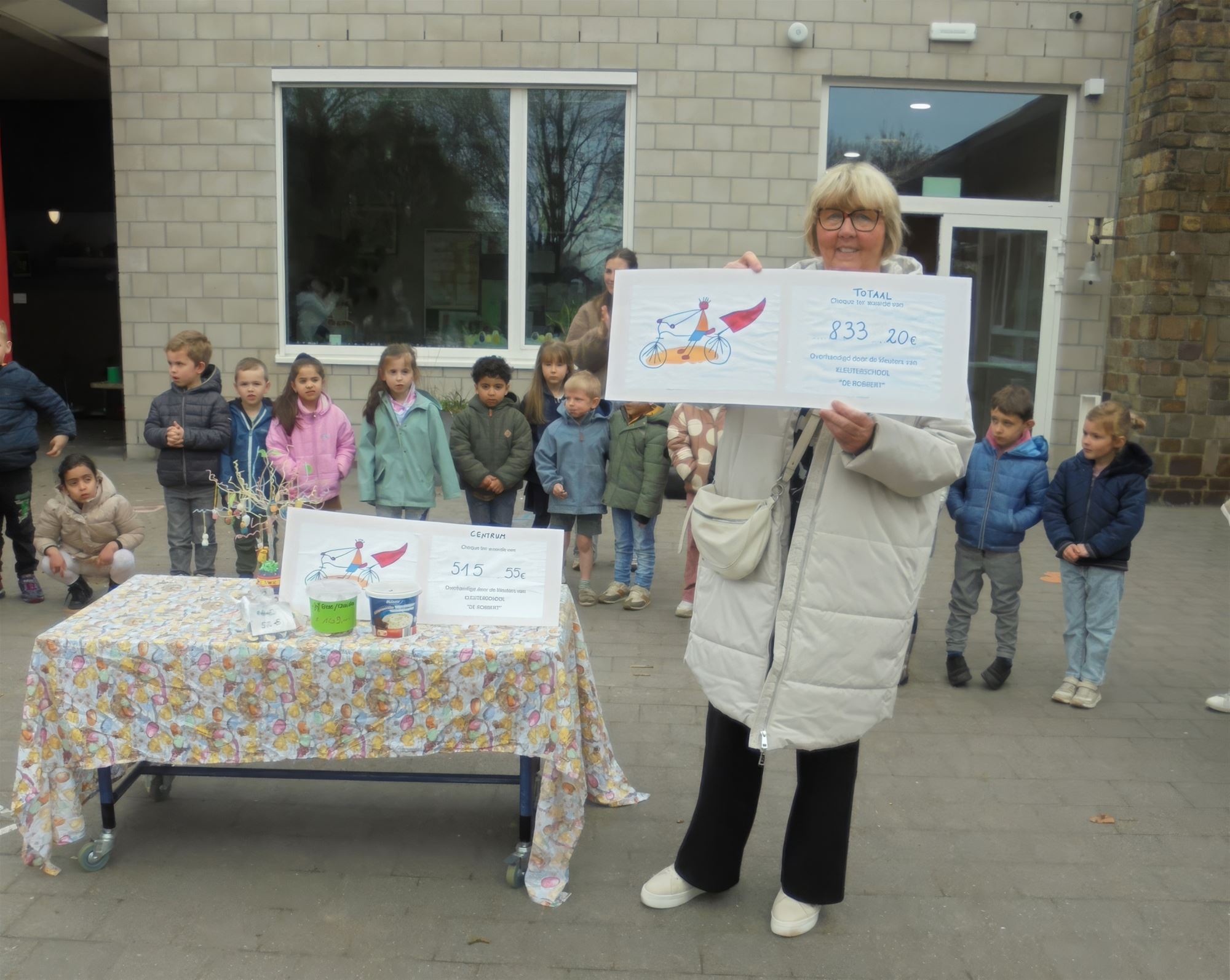 In de wijkschool trokken de kleuters samen met hun juffen op pad om te sterzingen. Met veel enthousiasme en een flinke portie charme zamelden ze geld in voor het goede doel. Ook in de hoofdschool zaten de jongste leerlingen niet stil: er werd volop geknutseld, gebakken en zelfs popcorn gemaakt. Deze creaties en lekkernijen werden nadien met trots verkocht aan (groot)ouders en medeleerlingen.