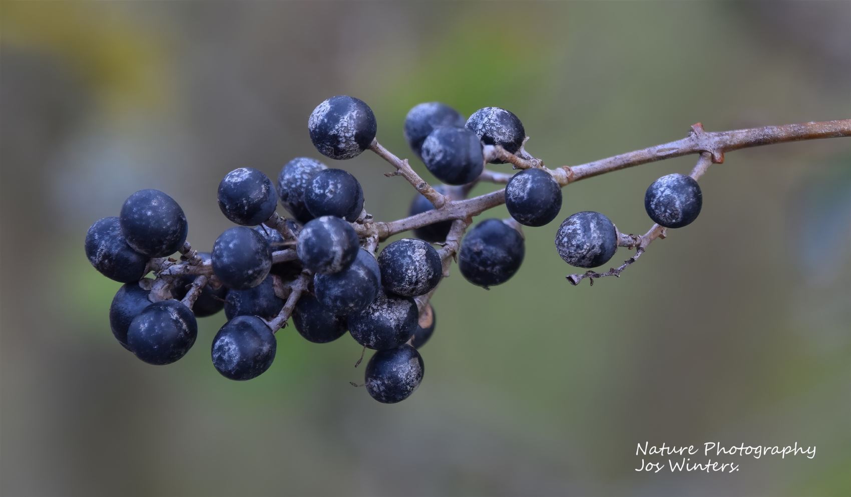 Jos Winters zwarte, glanzende vruchten die ontstaan zijn na de witte bloei van de liguster.