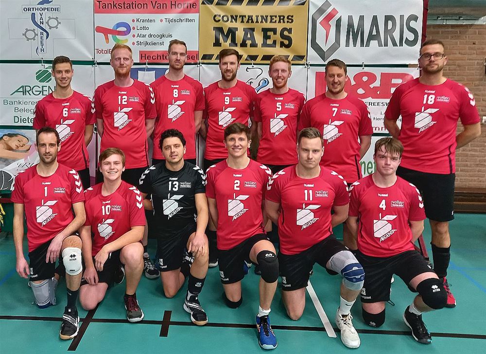 heren A (promo 1), 2de in de ranking, wisten te winnen van hun achtervolger Maaseik, 3de in de ranking. Na een fors verlies in de heenwedstrijd werd het deze keer een winstmatch voor HE-VOC. Hoewel de eerste set gewonnen werd door de Maaseikenaars wisten de HE-VOC-ers toch het laken naar zich toe te trekken op de daaropvolgende 3 sets, het werd zo 3-1.