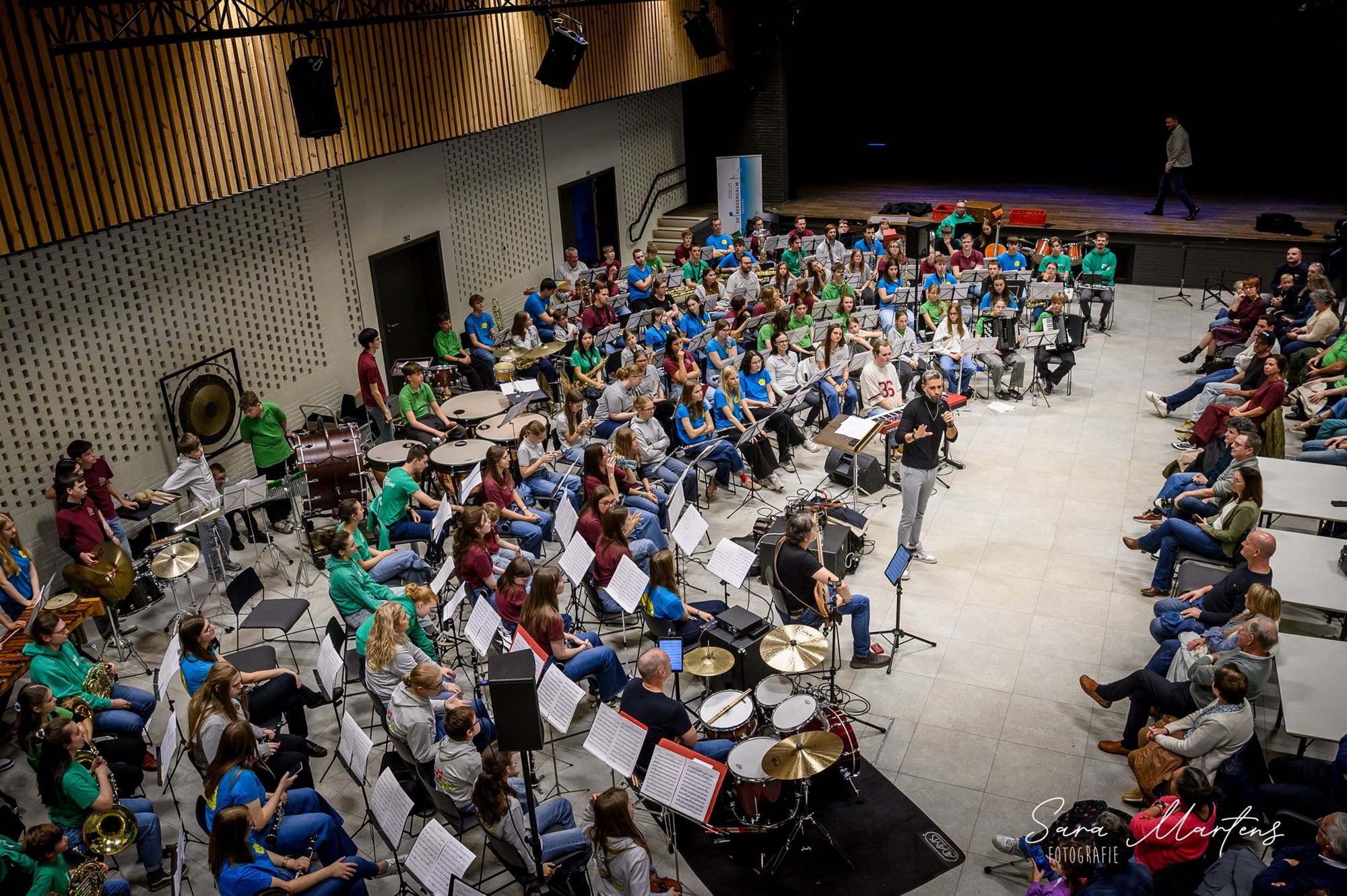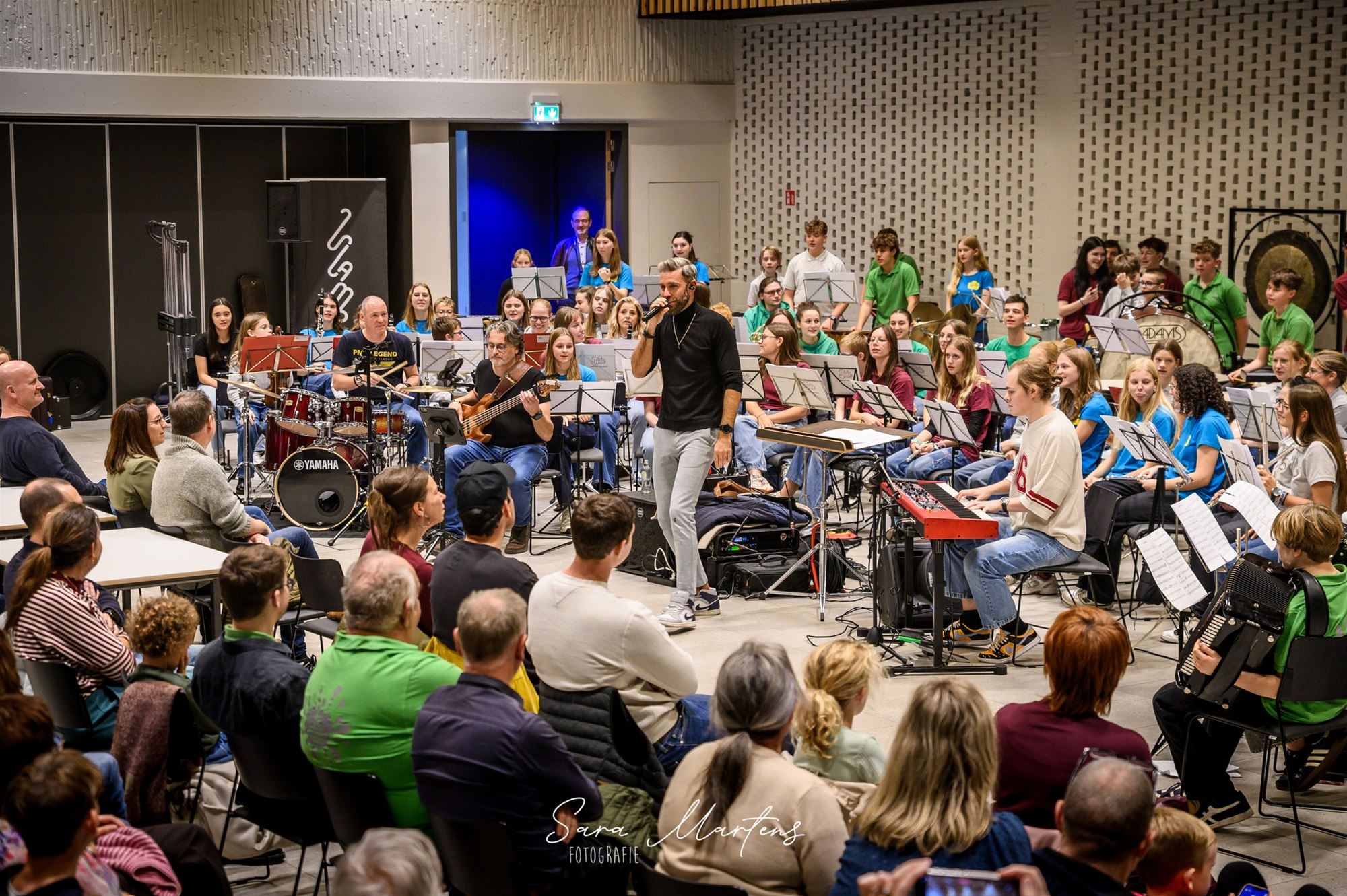 De dag werd feestelijk afgesloten met een optreden van Maarten Cox Music. Tijdens het slotnummer mochten alle deelnemende muzikantjes meespelen op het podium — een pakkend en indrukwekkend moment, zowel voor hen als voor het publiek.