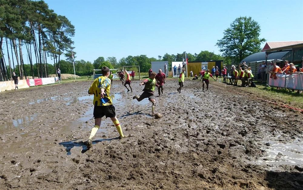 moddervoetbalcompetitie is overdreven. Wie gaat er in zo'n mooi weer kijken naar