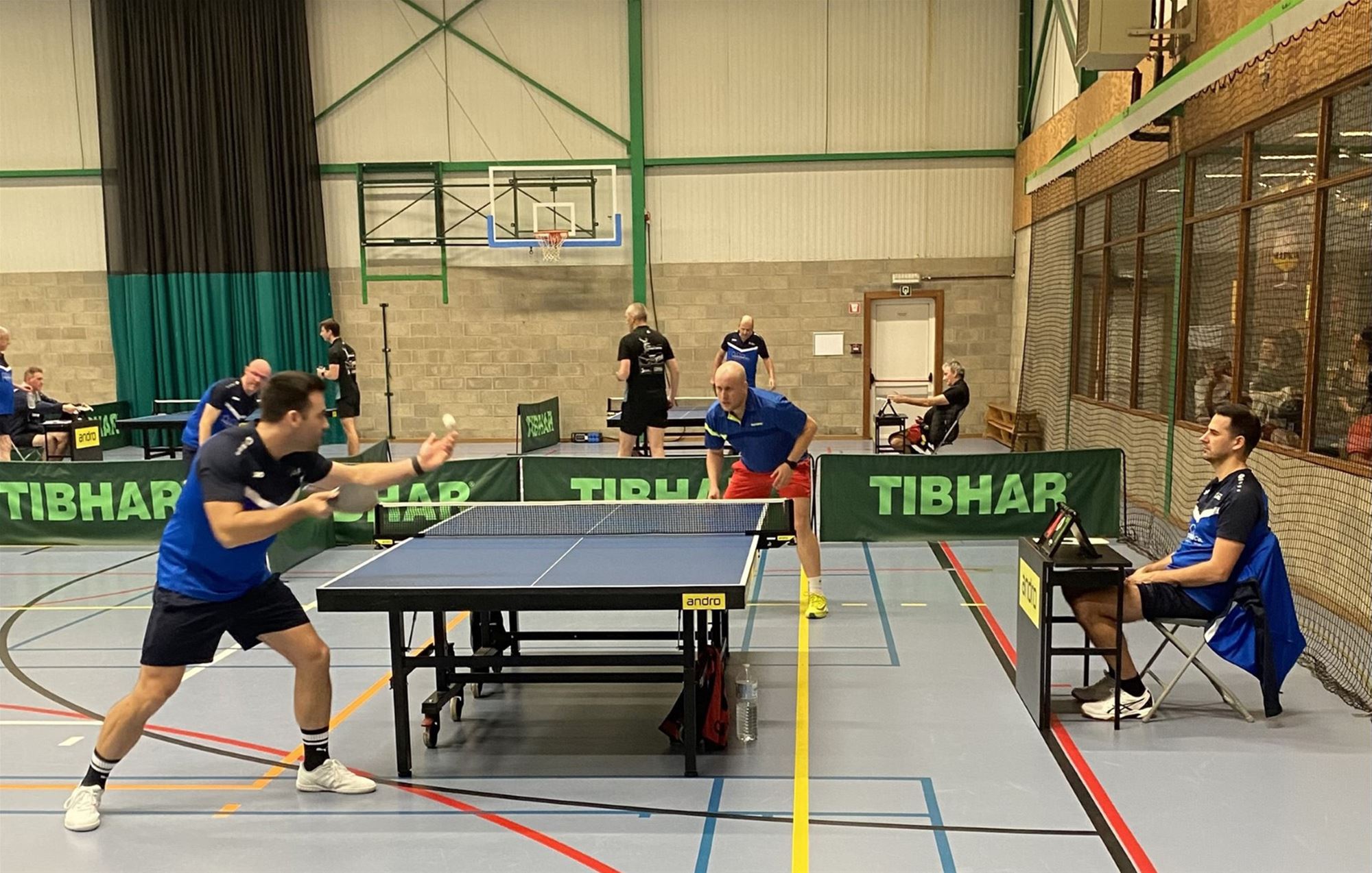 Voor Peter (B), Jens en Johan was het een blij weerzien met de club waar ze jarenlang speelden. Paal trad aan met twee B6-spelers – vorig seizoen nog actief in Landelijke – maar Hechtel-Eksel A liet zich niet intimideren.