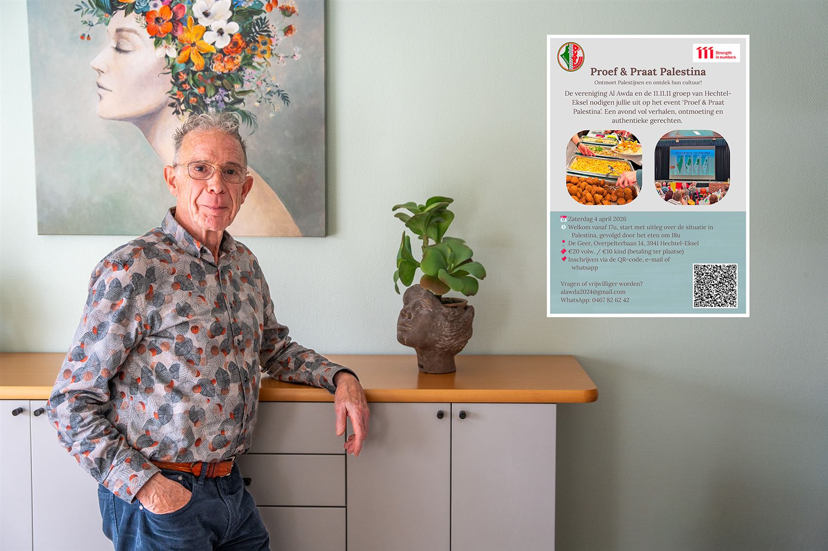 Inschrijven kan via de QR-code, e-mail of whatsapp (zie affiche hier onder)