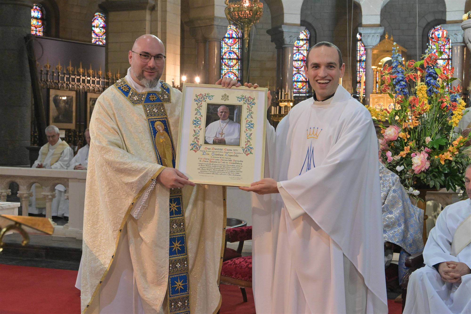 In aanwezigheid van prins Laurent en prinses Claire werd deze namiddag in een bomvolle kerk de nieuwe pastoor aangesteld. Gianluca Loperfido neemt met heel veel goesting de taak van pastoor op zich. Het parochieteam had de viering al weken voorbereid. Het werd dan ook een emotionele viering waar de parochianen naar uit keken. Ze stellen veel hoop op de jonge priester. De aanwezigheid van het prinsenpaar is te danken aan de banden die Loperfido heeft met koningin Paola, net als de pastoor van Italiaanse afkomst. "Ik heb haar al een paar keer ontmoet. De eerste keer bij de Italiaanse gemeenschap in Genk". Paola en Albert konden er niet zijn maar Laurent en Claire namen de honneurs waar.