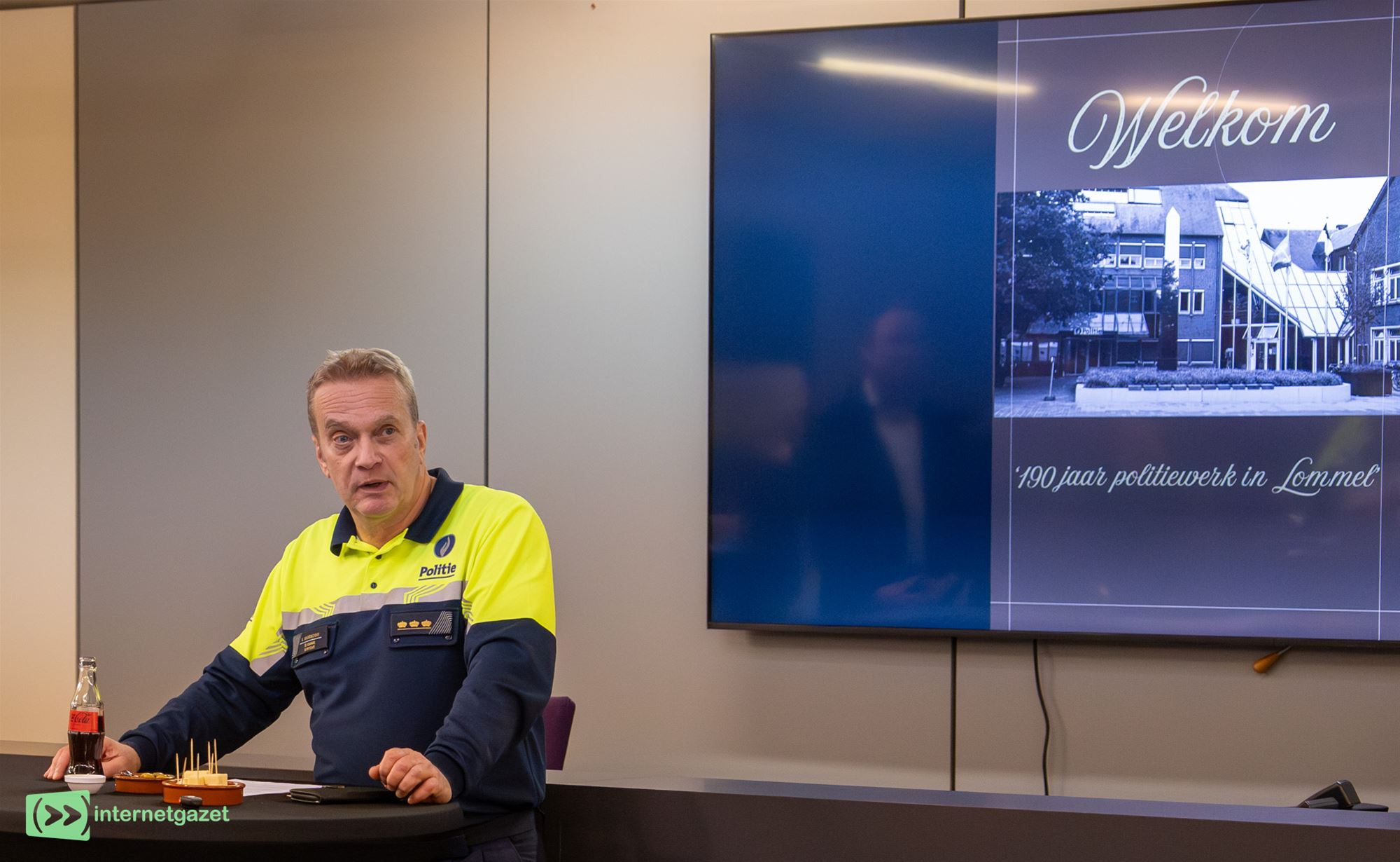 Korpschef Bart Voordeckers blikte in zijn toespraak uitgebreid terug op bijna twee eeuwen politiezorg in Lommel. Hij schetste hoe het politiewerk rond 1830 begon met een handvol veldwachters die te voet of te paard patrouilleerden over de zandwegen van het toen uitgestrekte heidedorp. Zij kenden de inwoners bij naam, bemiddelden bij burenruzies aan de keukentafel en waakten over de rust tijdens kermissen en markten. Volgens Voordeckers is dat nabijheidsprincipe, 190 jaar later, nog steeds de kern van het politiewerk in Lommel.