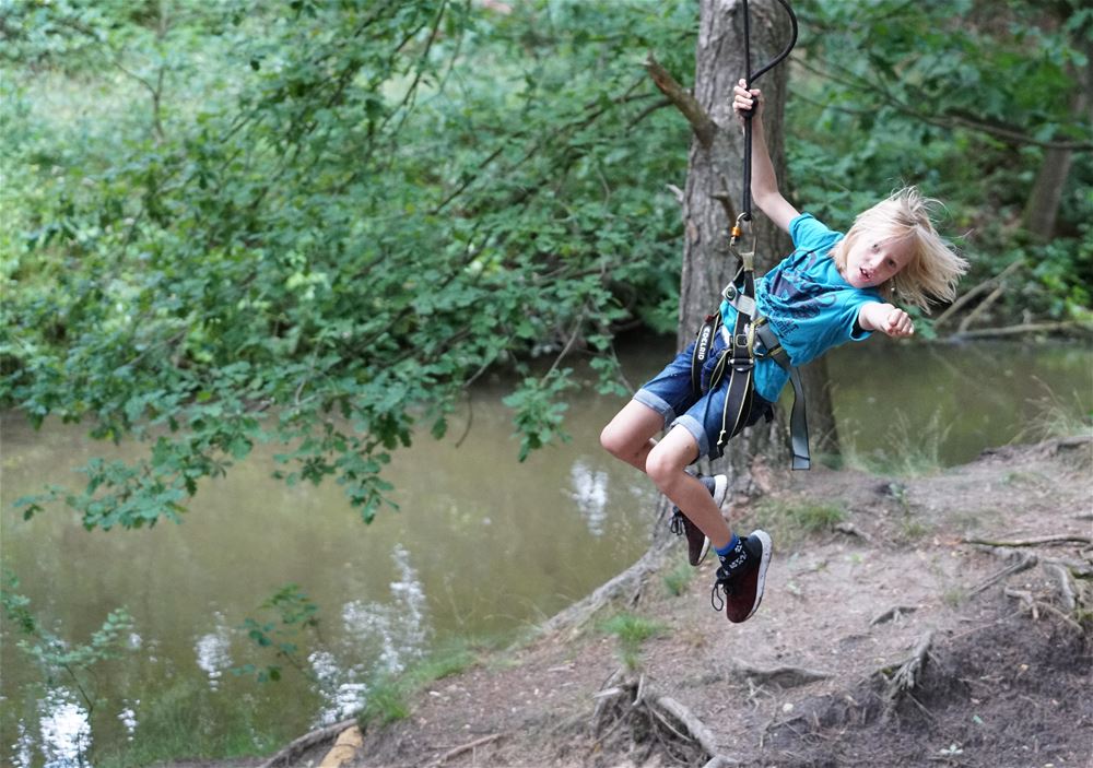leuke avonturentocht met allerlei doe-activiteiten zoals een apenbrug, speleobox, boogschieten, pamperpaal, pendule, klimnetten, vlotten over de Fossé, pendule en stuntvalmat. Alles onder begeleiding van het team van DOE: Dynamic Outdoor Experience.