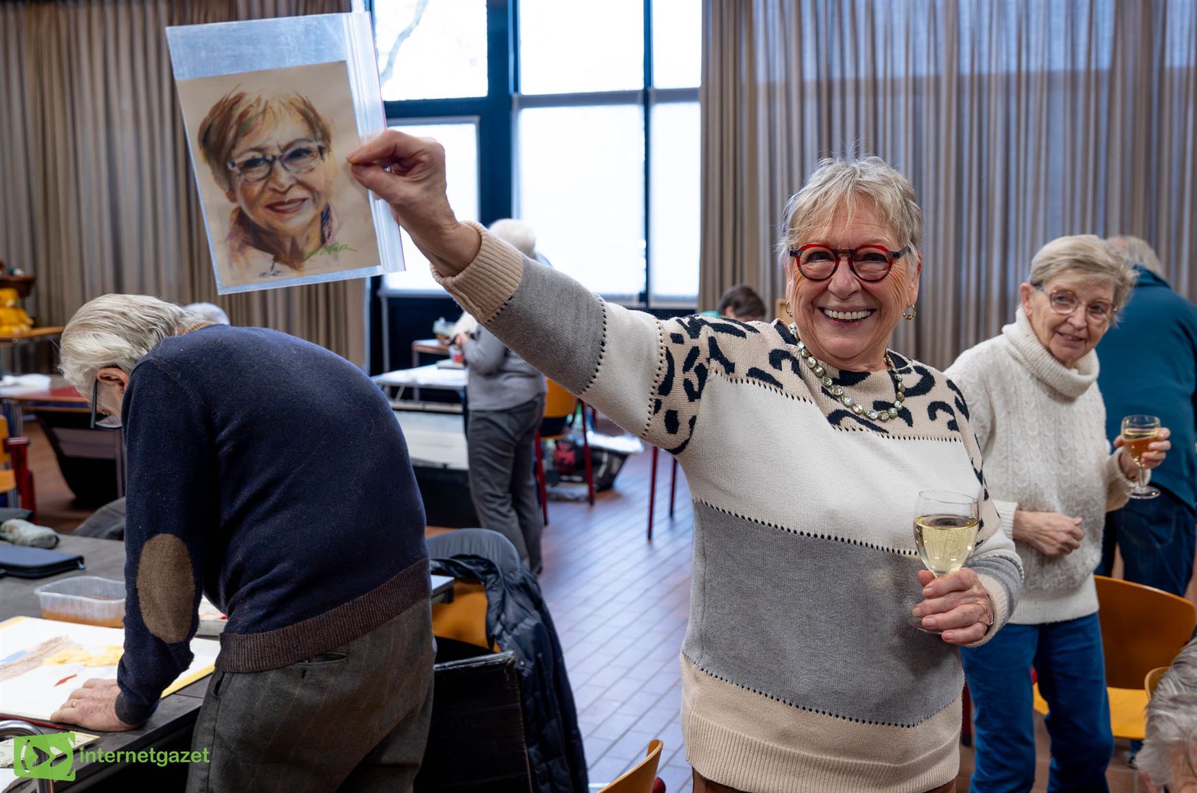 Ik ben nen echte Lommelaar, maar ik woon in Overpelt.” Op de foto toont ze een aquarel die één van de deelnemers van haar maakte.