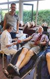 een eerste stop op een terras. Daar genoten ze van een fris drankje en het zicht op de vele bezoekers van de kermis. Vervolgens werd er over de kermis geslenterd en hier en daar een babbeltje gemaakt met een bekende, een