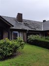 Tijdens een kort maar hevig onweer deze namiddag sloeg de bliksem in op de schoorsteen van een woning aan de