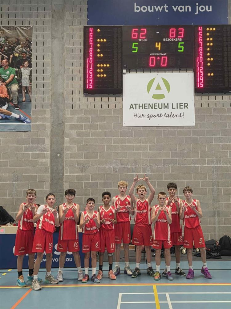 jongens (foto 1 onder) gisteren op bezoek bij Guco Lier. Ze wonnen vlot met 62-83. Deze ploeg is dit seizoen tot op heden ongeslagen, met drie keer duidelijke winst in de competitie niveau 2 en drie keer winst - al even duidelijk - in poule A van de Beker van Vlaanderen.