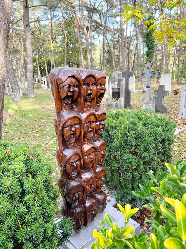 oktober. De tros van een dertigtal kinderkopjes uitgebeiteld uit Franse eik, zingen symbolisch een hymne voor alle overledenen. Het kinderkoor kan nu weer de hymne brengen voor de overledenen, met de nodige fantasie hoor je een perfecte uitvoering van het Adagio van Ludwig Von Beethoven. Wat kan kunst toch mooi zijn!