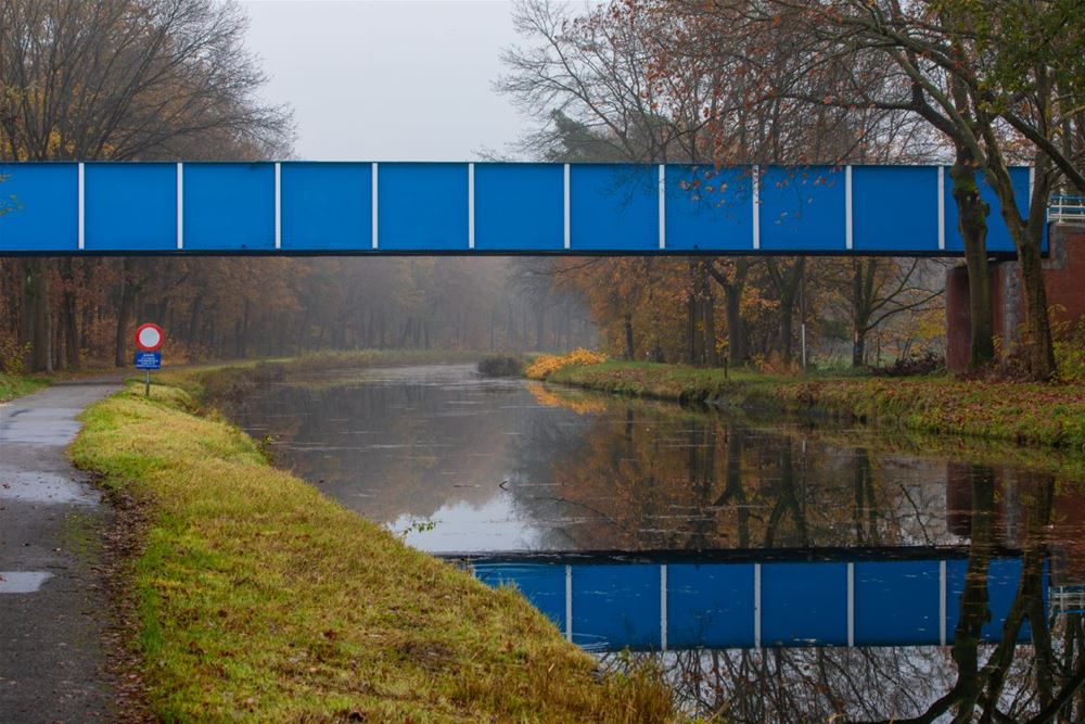 Mario Vanoppen, de blauwe kanaalbrug in Gelderhorsten of de sterk bewerkte blauwe foto van Kattenbos, beide van