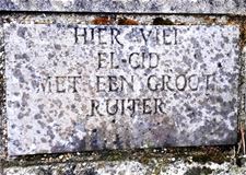 nabij grenspaal 194 op Lommels grondgebied en is vanuit Bergeijk-Luyksgestel bereikbaar via de Kapelweg (Pielis) links af het Miel Ottenpad op. De inscriptie luidt: “Hier viel El-Cid met een groot ruiter” (let op het woordje “met” in de tekst ‘met een groot ruiter’). Onderaan de steen staat de afbeelding van een paardenhoofd Het is om te beginnen jammer, dat er geen datum in het monumentje staat gebeeldhouwd. Het moet toch al enkele jaren oud zijn. Vermoedelijk uit 1986. ‘El Cid’ is de naam van het rijpaard dat op dat moment Lommelaar