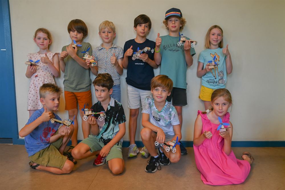 Buiten dat drone vliegen deze namiddag hebben de kinderen van 8 tot 12 jaar hun eigen coole propellerwagen gebouwd en leerden ze met Lego Essential en Lego Mindstorms werken.