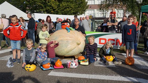 Jan Lyen met een pompoen van 460kg en Wouter Rens (8 jaar) werd de winnaar van de mooiste pompoen, de