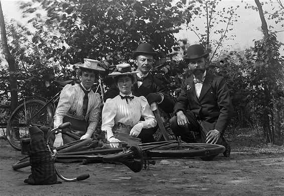 Wim Denijs deze foto afdrukken. Het is een prachtig document, en niet alleen omwille van de kleding van de protagonisten. Kijk ook eens naar die fietsen... De jasbeschermer op de staande fiets is bijzonder, en het
