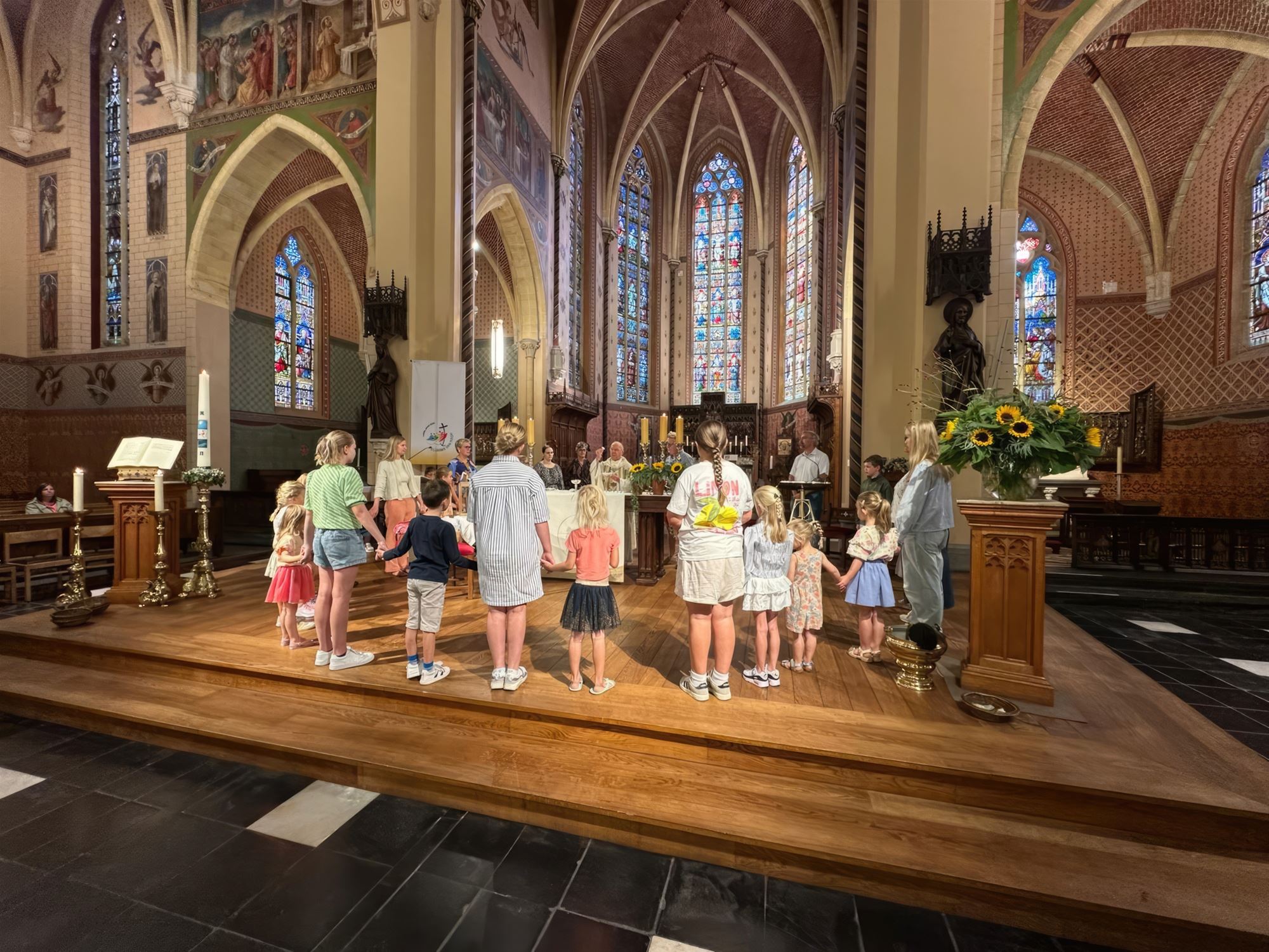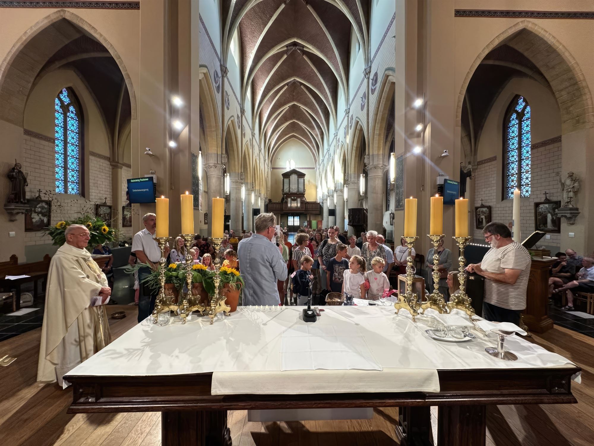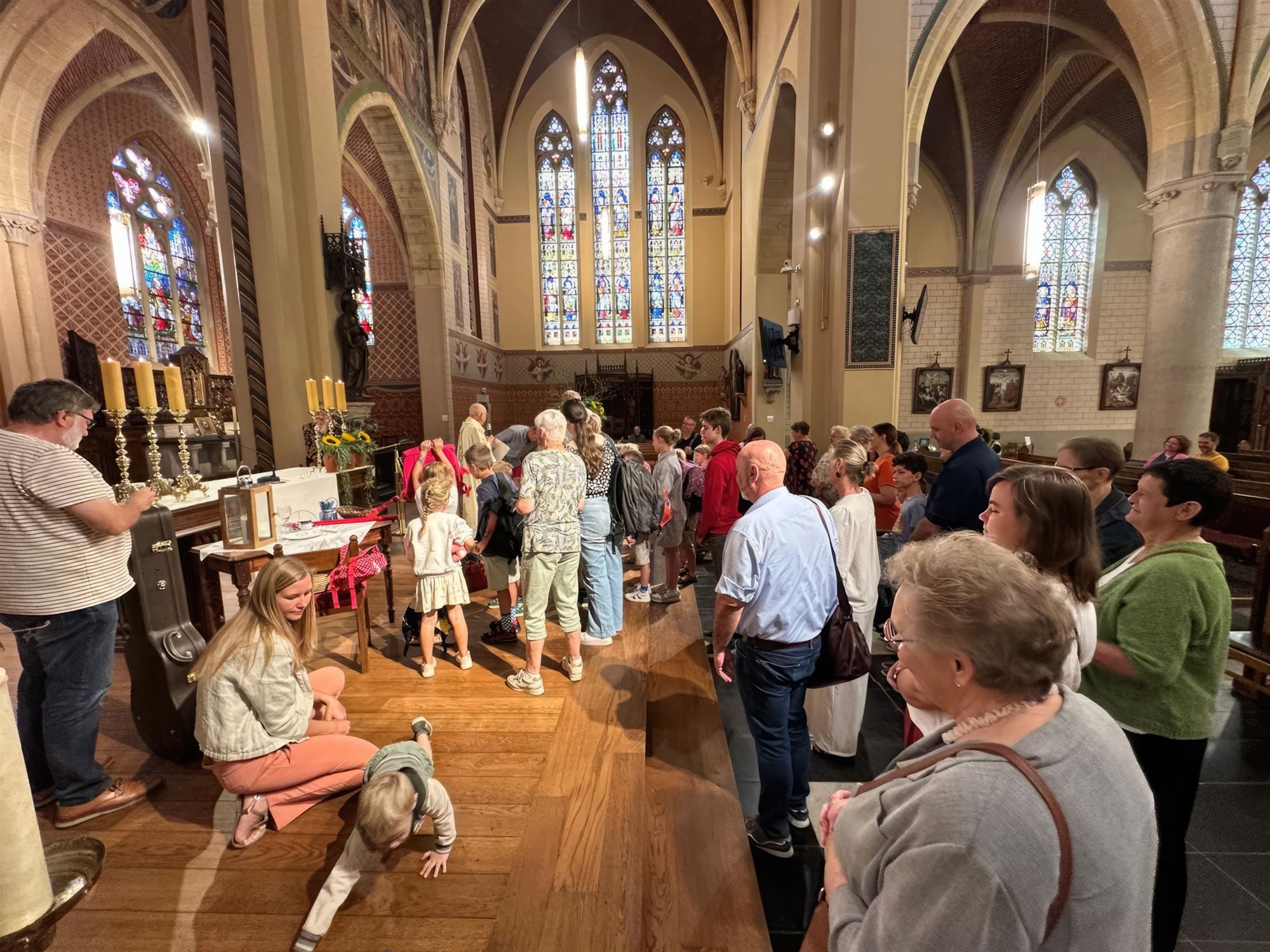 gezinsviering in de Sint-Pietersbandenkerk van Lommel-Centrum. Pater Maurits ging deze viering voor en zegende op het einde van de viering alle boekentassen van de kinderen, ouders en aanwezige schooldirecties.