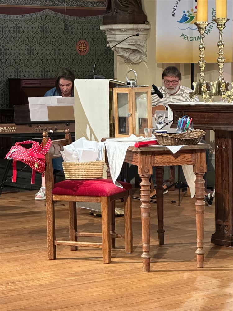 Het was een mooie viering rond het thema 'THUISKOMEN'. Thuiskomen, bij jezelf, de wereld, bij God.