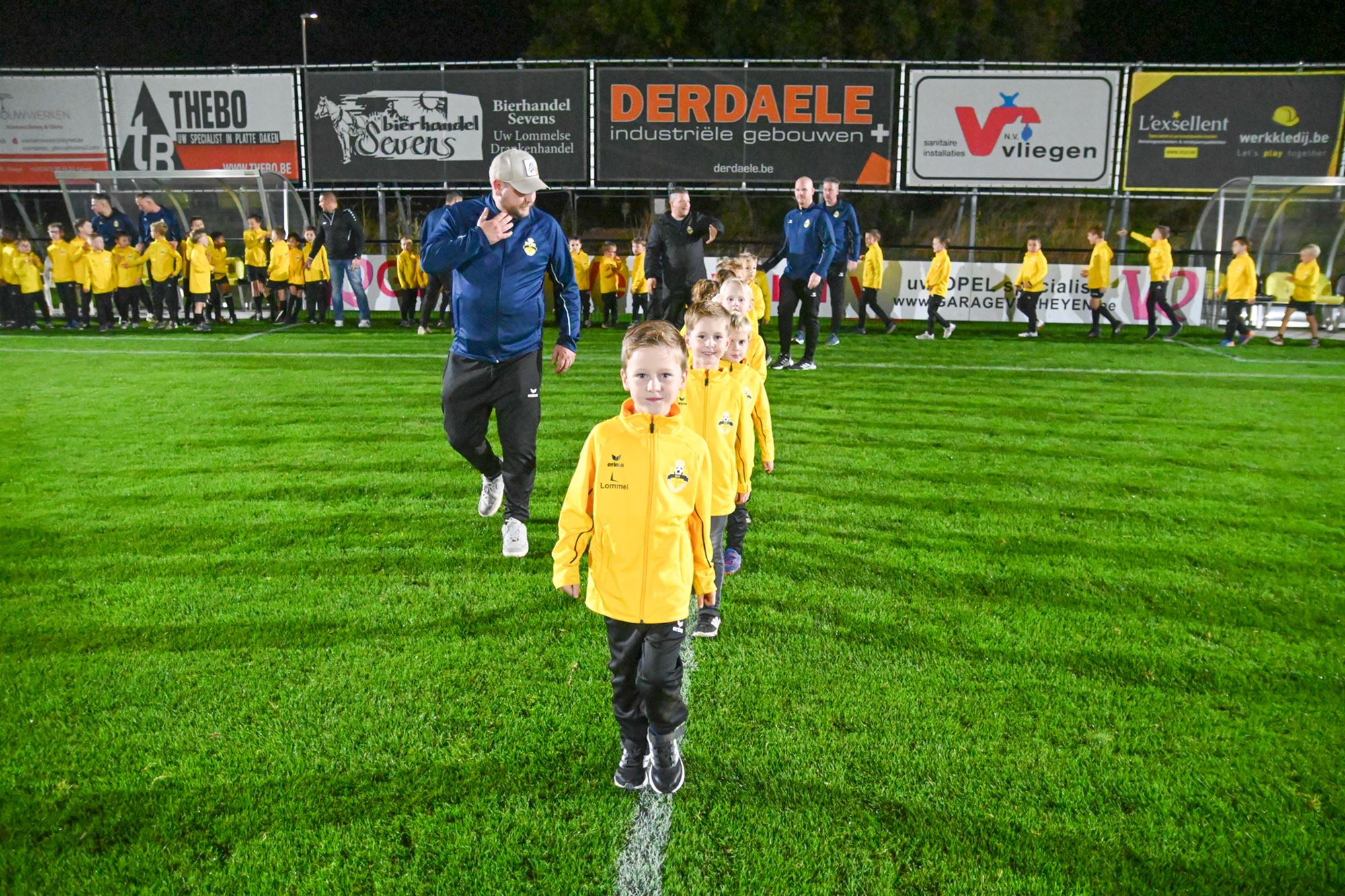 Na de fotosessie vormden de ploegen vanaf U6 een erehaag voor de spelers van beide teams, terwijl de spelertjes van U9 met de elftallen het veld mochten oplopen — een onvergetelijk moment voor de jonge voetballertjes én hun supporters.