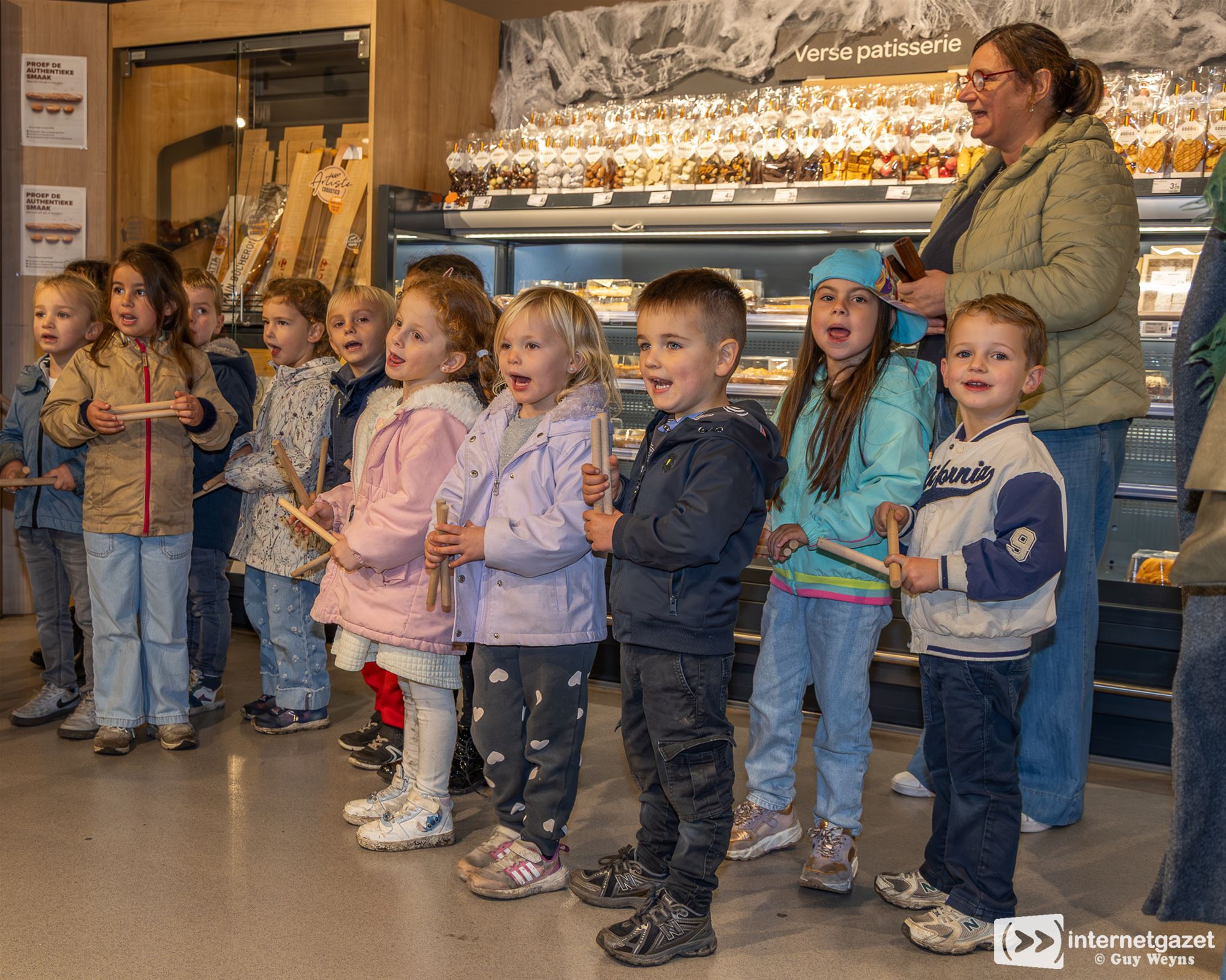 zelfgemaakt liedje voor de medewerkers van de supermarkt. Als kers op de taart overhandigden ze ook een kleurrijk