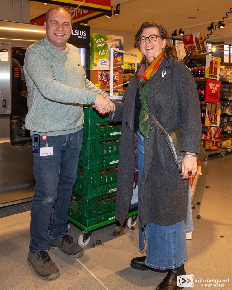 Ook bij de supermarkt konden ze het gebaar van de kleuters duidelijk waarderen. “De zang en glimlach van de kinderen maakten onze dag helemaal goed,” aldus winkelmanager Stefan Daems. Om hun waardering voor de school uit te drukken kregen alle kleuters nog een lekker appeltje. Bedankt!