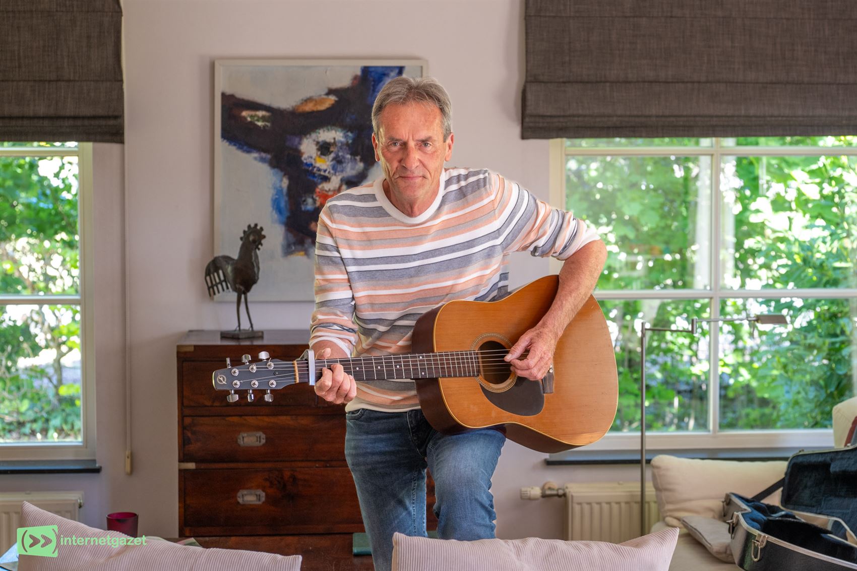“Daardoor speel ik misschien wel op mijn eigen manier. Ik ben geen topgitarist, maar ik kan meer dan met dat plectrum trekken”, zegt hij lachend. “Ik heb mijn eigen stijl ontwikkeld. Ik schrijf ook geen noten uit. Meestal pak ik mijn gitaar, voel ik iets en dan schrijf ik een tekst op.”