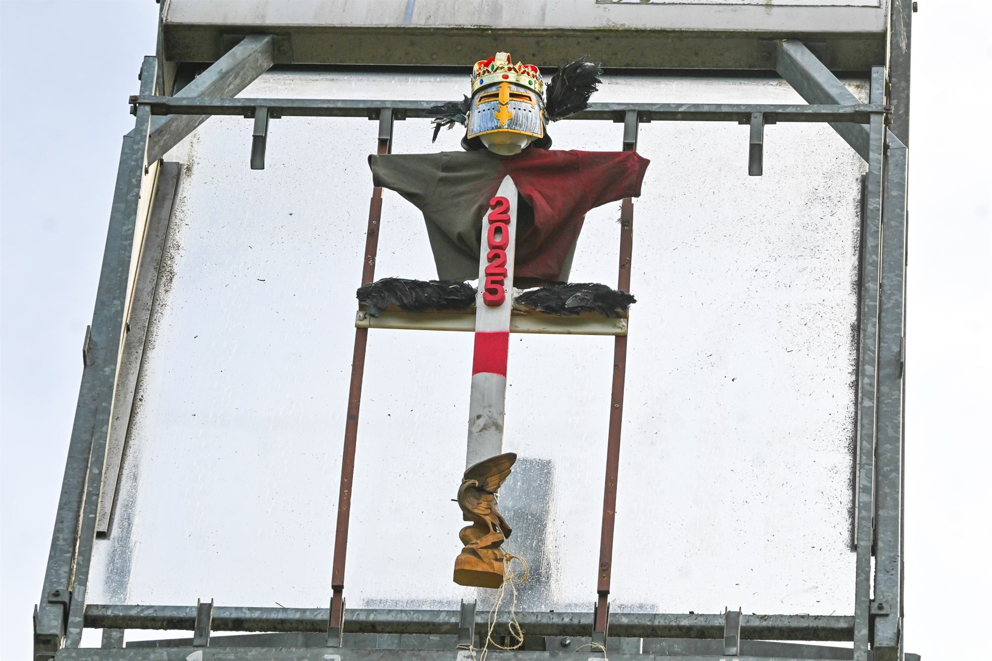 Opvallend dit jaar was dat de schutters moesten mikken op een rood vlak op het witte hout van de vogel. Op die manier wordt de vogel niet stukje bij beetje kapotgeschoten, maar komt hij in zijn geheel naar beneden zodra het rode vlak doorboord is.
