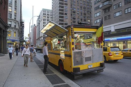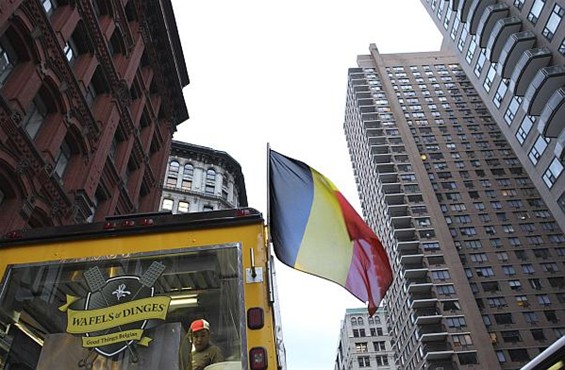 Dirk Vandenberk. "Hij eet een Belgische wafel bij 'Wafels & Dinges', waar de driekleur altijd wappert... Groeten uit New York!"