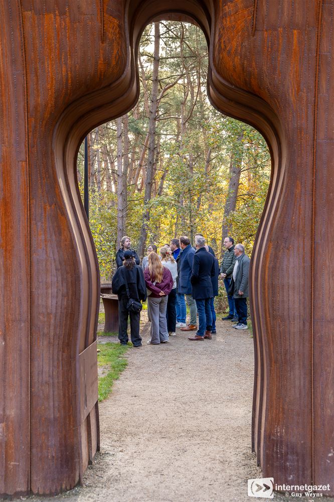 Will Beckers een uitgebreide toelichting over het ontstaan en de betekenis van dit imposante stalen kunstwerk, dat de toegangspoort vormt tot Nationaal Park Bosland en symbool staat voor de verbinding tussen mens en natuur. Vervolgens schetste schepen Joris Mertens de evolutie van Bosland – van het eerste masterplan tot de huidige status als Nationaal Park – en de ambities die hieruit voortvloeien.