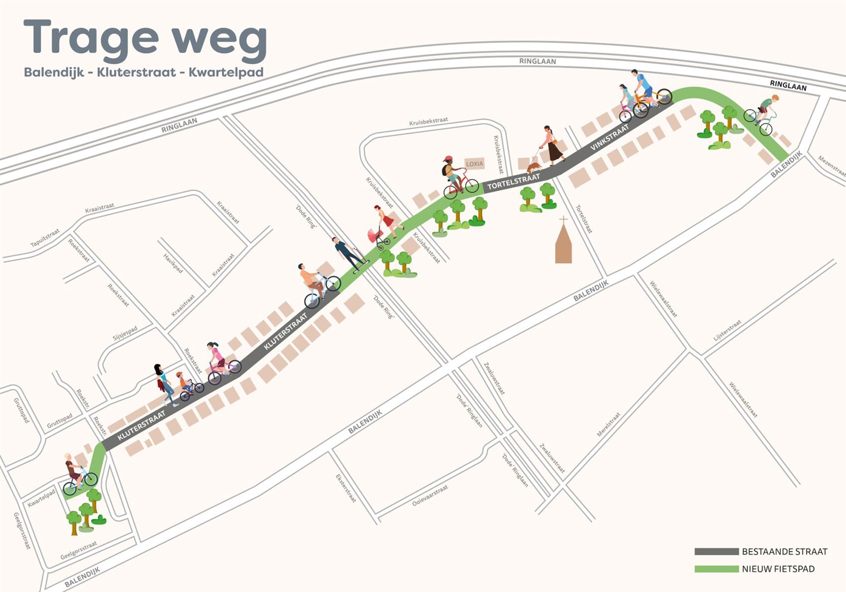 nieuwe trage weg tussen Balendijk, Kluterstraat en het Kwartelpad. Met dit project wil de stad inzetten op een veilige en comfortabele verbinding voor