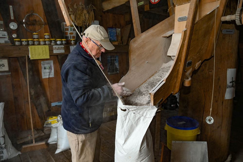 Leyssensmolen in Kattenbos, helemaal gratis. Tijdens die openmolendagen tonen de molenaars de werking van de molen en vertellen ze wetenswaardigheden eigen aan het beroep van weleer, over de soorten graan en meel, de werking van de molen,…. Er is ook altijd mogelijkheid tot de aankoop van artisanaal gemalen melen. Vandaag was er meer dan voldoende wind, dus werd er ook koren gemalen en kon je alles van dichtbij bekijken en meemaken. Wat de wandelaars die langs de molen passeerden ook kwamen doen.