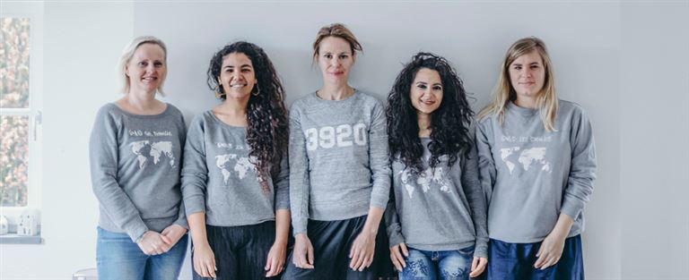 Team 945 in beeld: Habiba Arjah, Marie Bouly, Katrien De Ruysscher, Hala Gogo, Petra Nysten, Sofie Sevens, Sophie Tournier