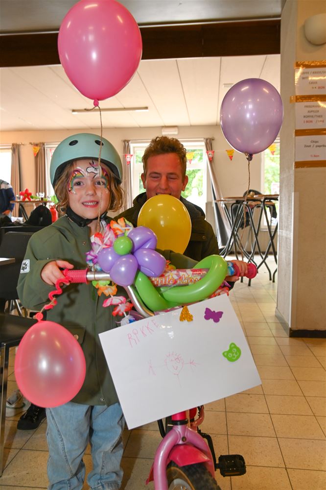 kindernamiddag met springkastelen, een kinderdj, een schminkstand, een ballonplooier en een activiteit om fietsen te versieren.