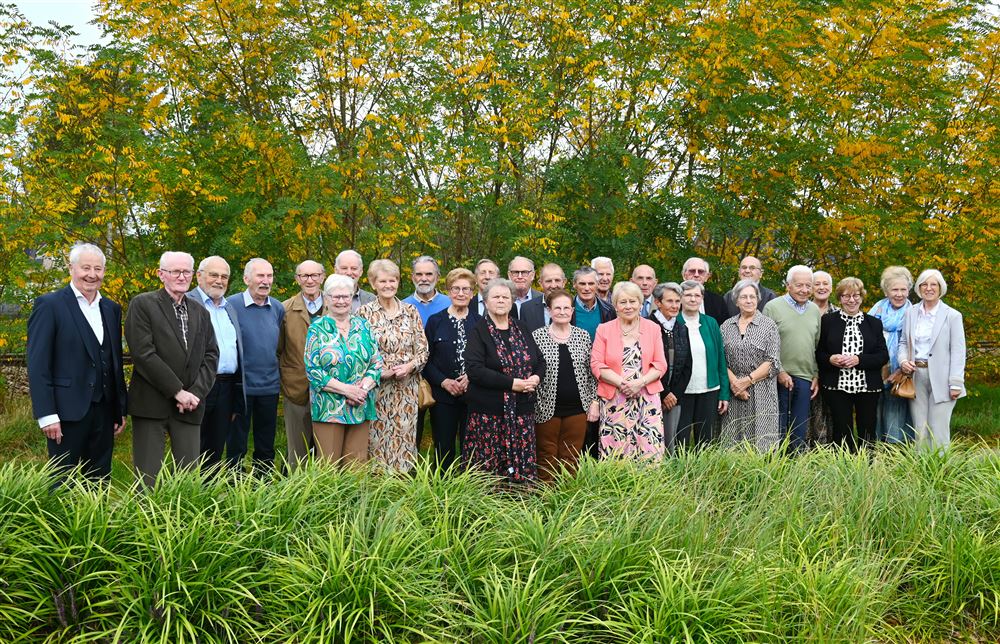 allemaal 82-jarigen waren, aangezien deze viering maar liefst twee keer werd uitgesteld omwille van het gekende c-beestje... Maar nu was het dan toch zover, en konden in een organisatie van Jef Mertens de aanwezigen genieten van een receptie, een stuk taart, belegde broodjes én een