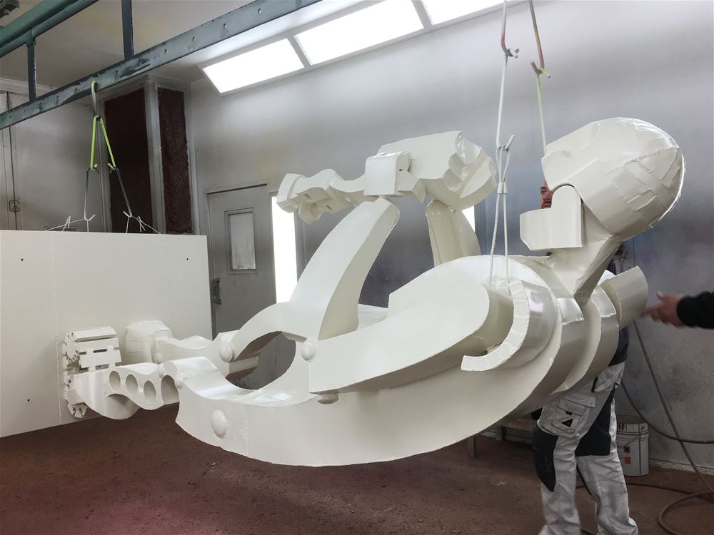 (eerste foto onderaan), en was dus dringend aan een onderhoudsbeurt toe. Vandaag werd hij netjes terug op 'zijn' rotonde geplaatst en waakt hij weer over het Kristalpark!