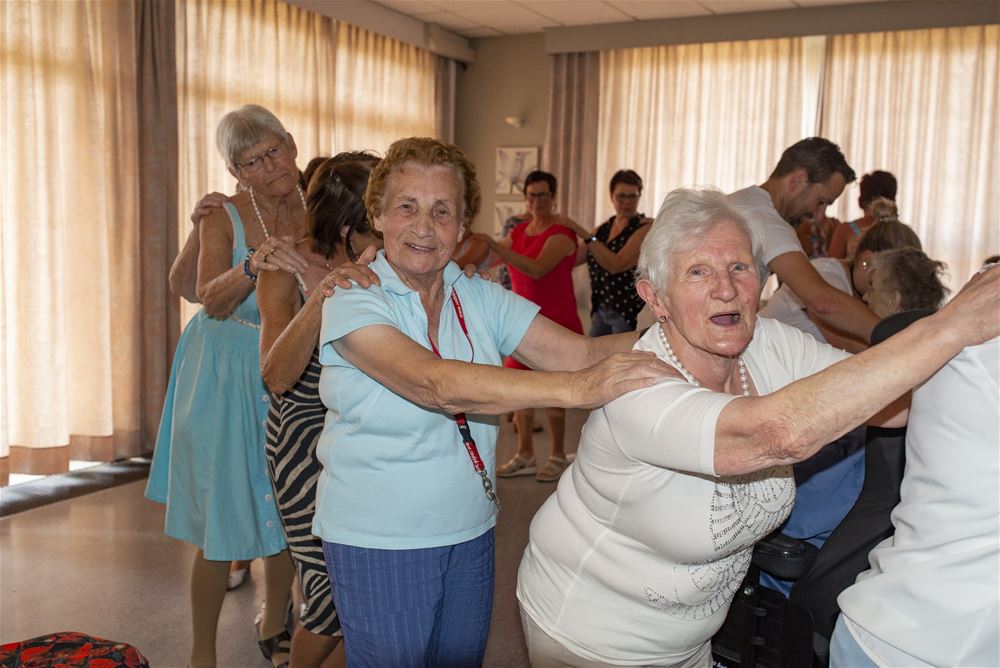 Omwille van de enorme hitte vandaag (+40°) werd er door het stadsbestuur terecht beslist om de seniorennamiddag niet te laten plaatsvinden op het Hertog Janplein, maar in de Bekelaar en het Kapittelhof. Maar ook daar genoten de 'iets ouderen' ten volle van