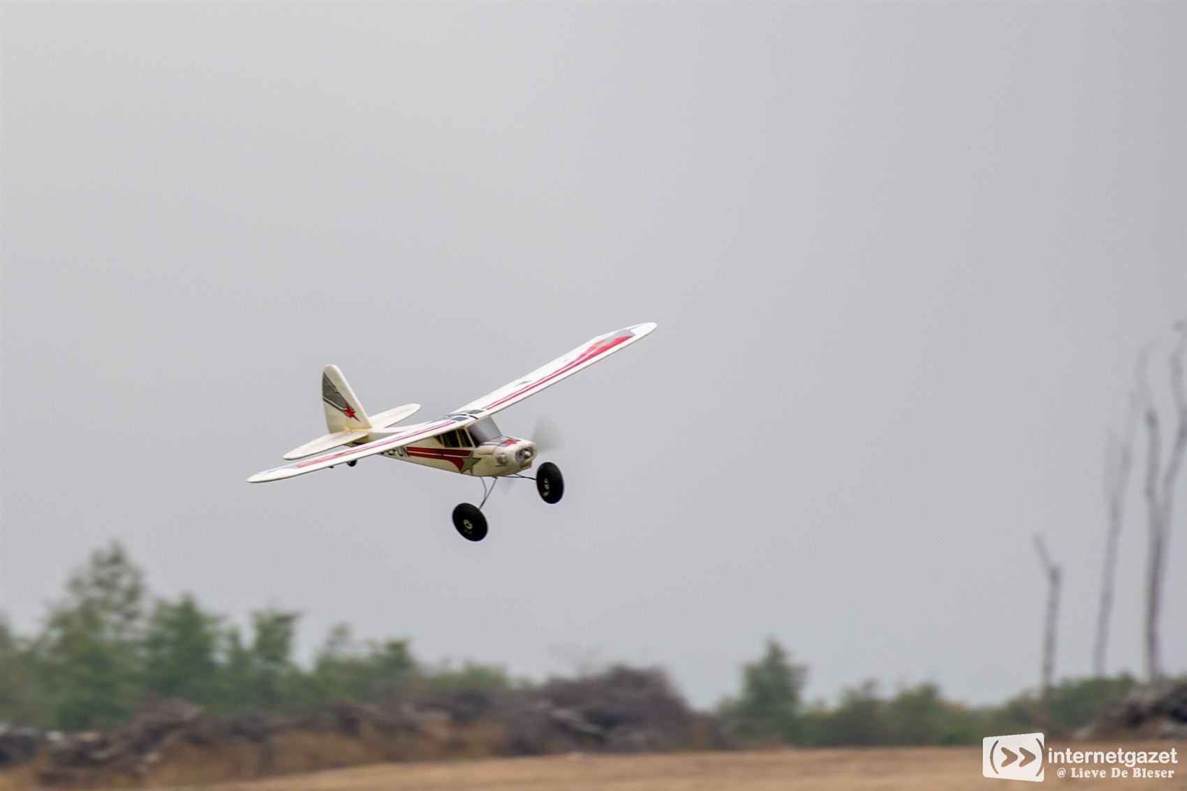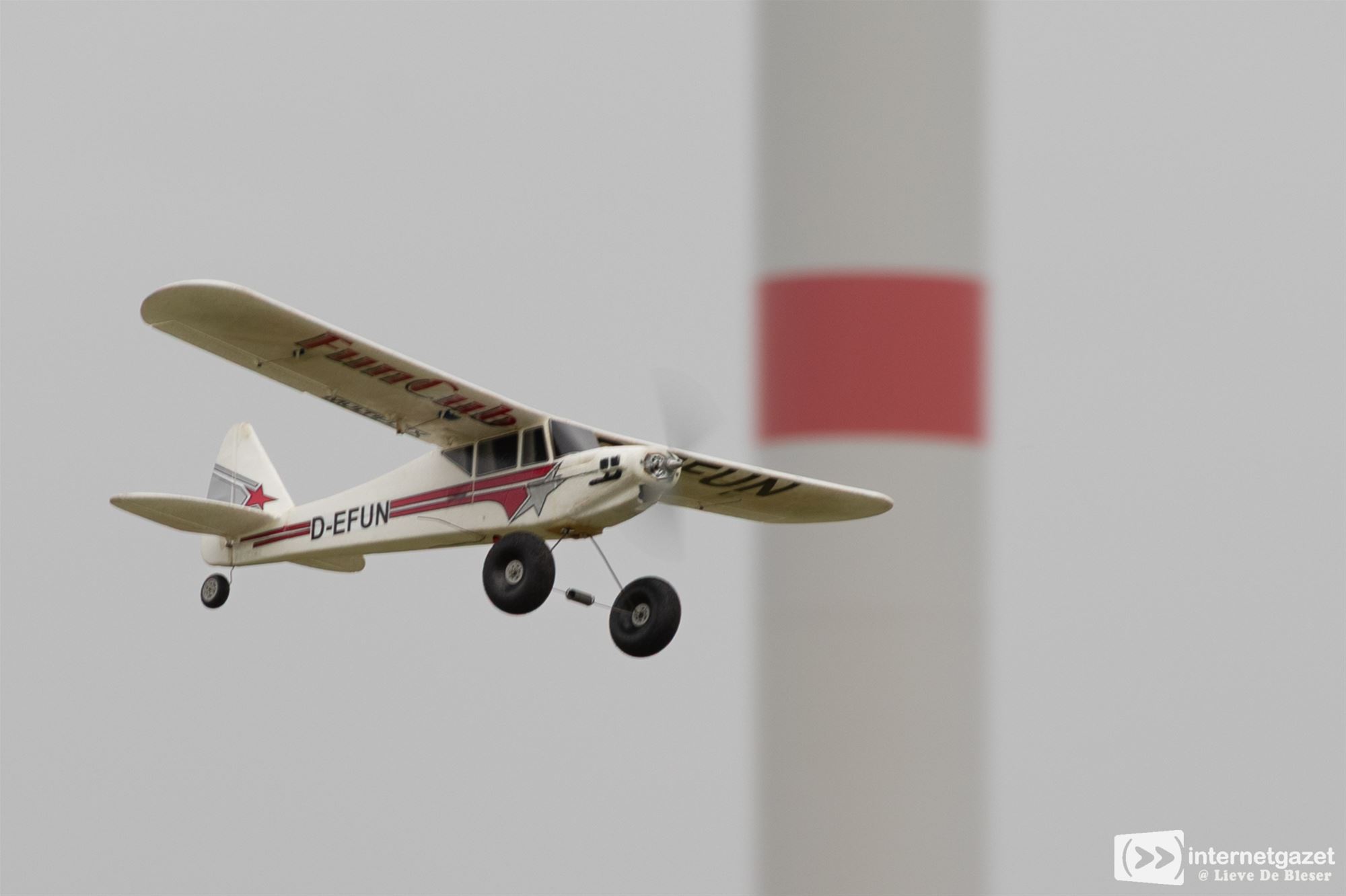 Lommelse Model Club LMC op het Kristalpark. Met zicht op de windmolens en het ecoduct kwamen 19 piloten van de club - en waarom zijn dat nu allemaal mannen? - met hun modelvliegtuigjes hun kunnen tonen tijdens de