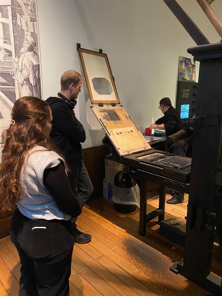 Het absolute hoogtepunt van de dag was het bezoek aan Museum Plantin-Moretus, het eerste en tot vandaag enige museum ter wereld dat op de UNESCO-Werelderfgoedlijst prijkt. Als kers op de taart kregen de cursisten een demonstratie te zien van het drukken van een gedicht van Christoffel Plantijn, gedrukt op een kopie van een 16de-eeuwse drukpers. Het gedicht mochten ze bovendien mee naar huis nemen — een herinnering die ongetwijfeld een ereplaats krijgt in de klas.