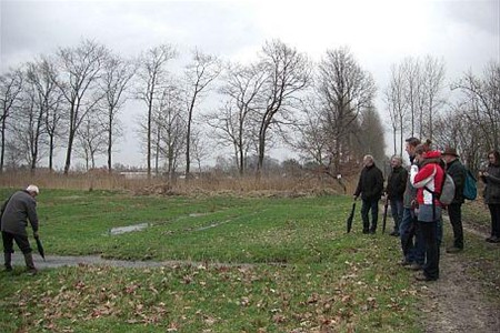 geleide wandeling door de watering, nu met de bevloeide weiden, waar de krokussen al volop in bloei staan. Ondanks de regen was het erg interessant; alles werd heel duidelijk uitgelegd. Behalve de bevloeiing en de krokussen zagen de wandelaars onder meer een witte reiger, een zestal reeën, een buizerd en enkele kikkers. Altijd weer de moeite, zo'n geleide wandeling...