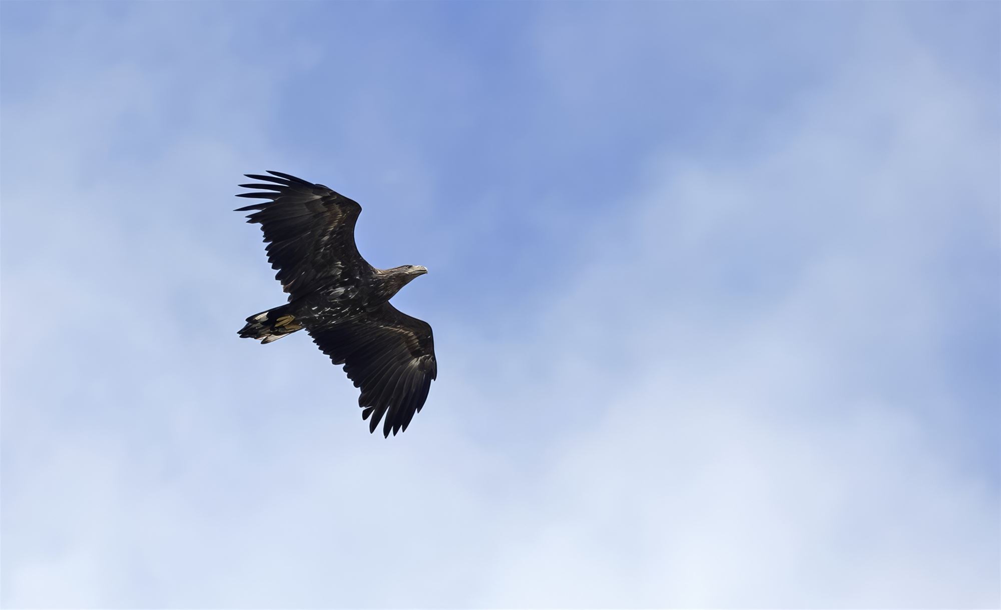 Ruddi Missotten in zijn tuin toen er een arend boven zijn hoofd vloog. Ruddi was net snel genoeg om er een foto