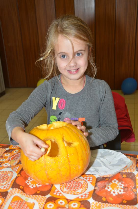 Gisterennamiddag richtte Tuinhier Lommel weer een workshop 'pompoen snijden' in voor de kids van 6 jaar tot 14 jaar in de parochiezaal van de Barrier. De kinderen brachten zélf een pompoen mee en ze kozen een figuurtje dat ze op de pompen tekenden met stippen. Daarna begon het uitlepelen en uitsnijden. De