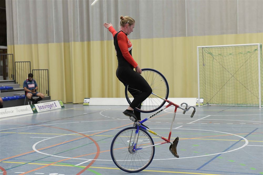 Tatika Bovendaerde de Beker van Vlaanderen Kunstwielrijden voor eerstejaars Manon Geldof.