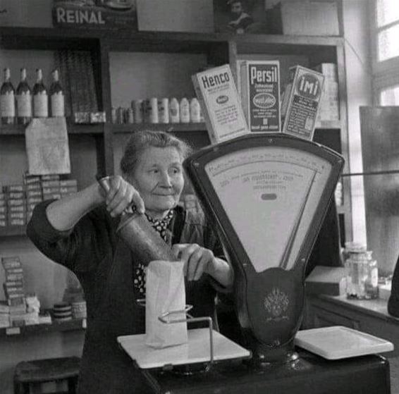 nog niet gehoord. Haast alles moest afgewogen worden: bloem, bonen,erwten... Een beetje minder of een beetje meer. Mag het iets meer zijn?