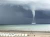 waterhoos op de Noordzee - je maakt het niet elke dag mee. Deze foto kregen we binnen van de families Verheijen en Vanvelk, die met vakantie zijn in Oostduinkerke. Zo'n waterhoos is een vaak trechtervormige slurf onderaan een wolk, veroorzaakt door snel draaiende luchtbewegingen boven open water. Hierbij wordt water omhoog gevoerd van het warme zeewater naar de koude bovenlucht. Als zo'n slurf het wateroppervlak raakt en water opzuigt, wordt dit verschijnsel een waterhoos genoemd. Het is een doorgaans betrekkelijk onschuldige vorm van een windhoos.