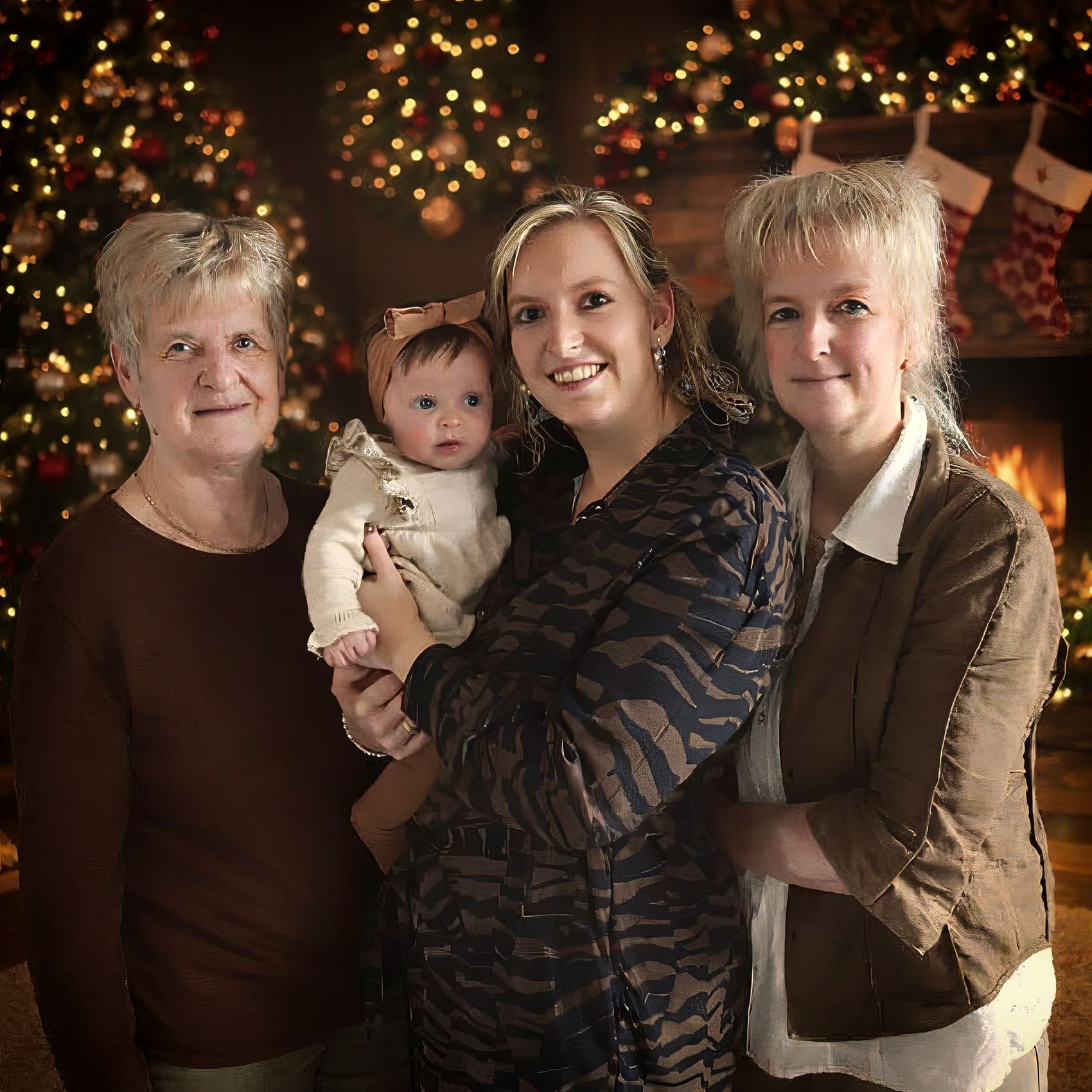 vier generaties rond één tafel. Annie Snoekx (77), Conny Wuytens (54), Kirsten Kesters (29) en de piepjonge Hanne Opdenakker (4 maanden) beleefden samen hun eerste kerst met vier generaties.