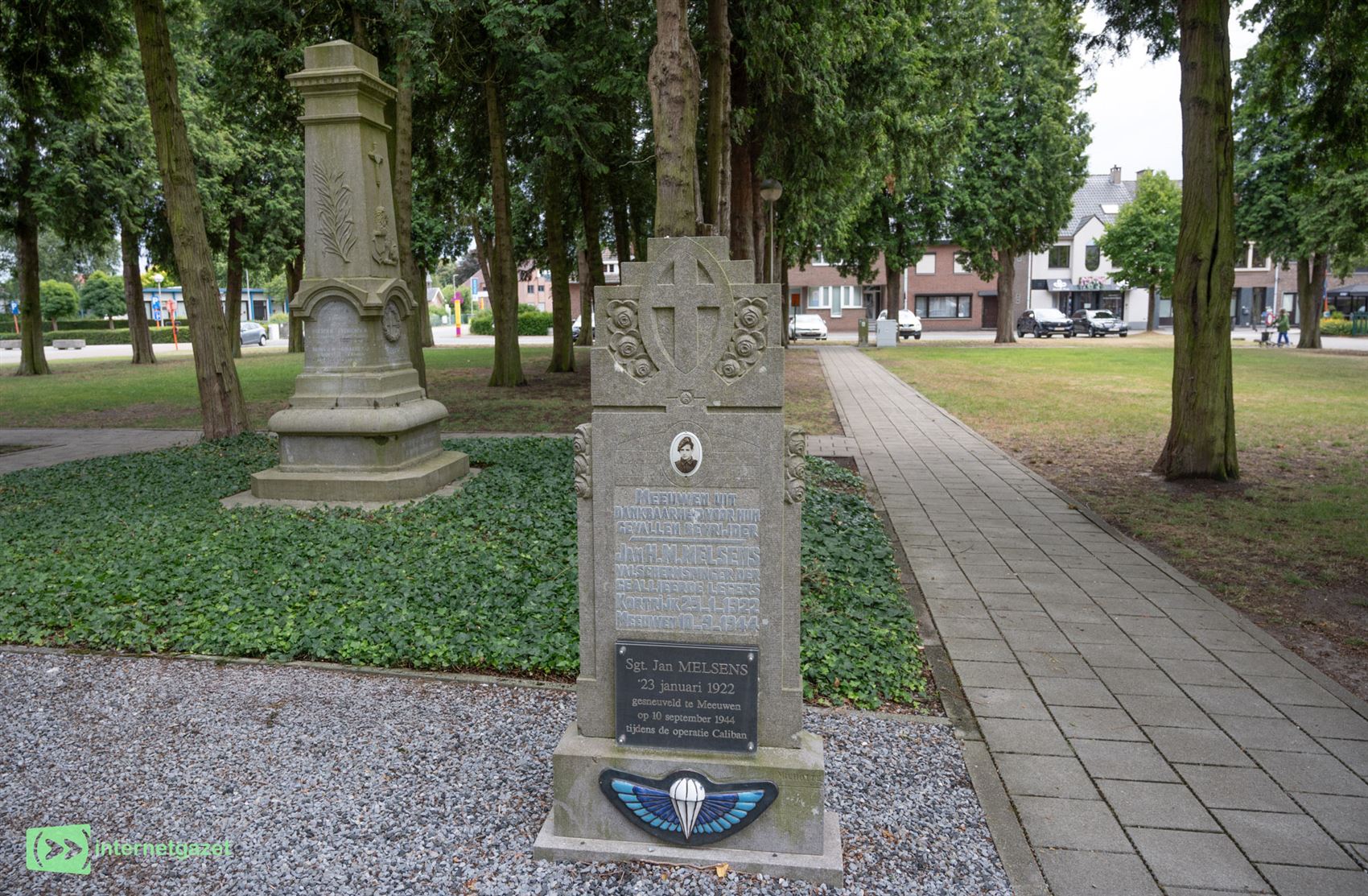 De gedenksteen van Melsens oogt als een grafsteen, maar in werkelijkheid heeft hij in Meeuwen slechts enkele dagen begraven gelegen in september 1944.