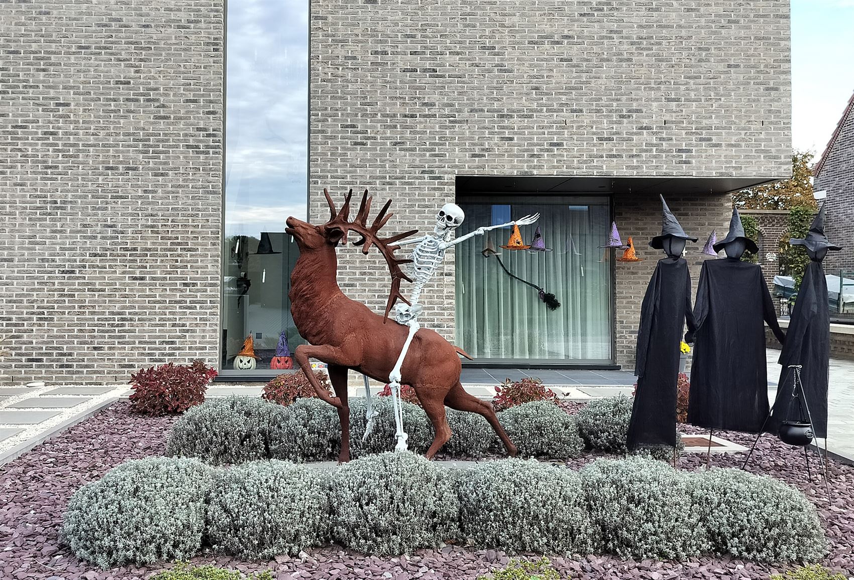 Halloween. Voorbijgangers worden er begroet door een skelet dat op een hert rijdt, onder het waakzame oog van drie geheimzinnige heksen. En volgens fotograaf