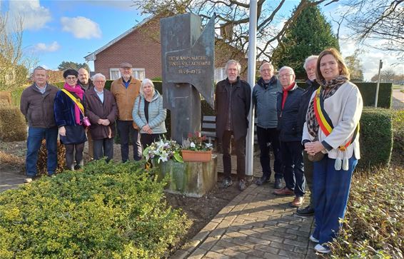 In aanwezigheid van burgemeester Ilse Wevers en schepen Hanne Schrooten werd een bloemstuk neergelegd bij het monument aan het kruispunt van de Hoogstraat met de Genitsstraat.