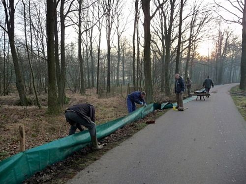 paddentrek gaat dit jaar uitzonderlijk vroeg starten. Aanleiding is de uitblijvende koude. Om de padden tijdens hun trek te behoeden voor het verkeer worden er nu hier en daar langs de weg schermen geplaatst en grachtjes gegraven waar de padden in terecht komen voor ze de weg kunnen oversteken. Die grachtjes leiden naar ingegraven emmers, die elke dag worden leeggemaakt door vrijwilligers. Vanmorgen vroeg was men aan het